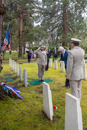 Continued: We held an act of remembrance at the Czechoslovak Memorial with the President laying a wreath accompanied by General Beran Czech Defence Attaché and WO Ales Feistinger. The President’s wife placed a memorial cross close by. Rt Hon Dr Andrew Murrison also laid a wreath on behalf of the Ministry of Defence. Ruth Moore played the Last Post, and we had a moments silence to remember all those Czechoslovak service personnel buried not just a Brookwood but across the United Kingdom. The highlight for us all was hearing the Czech National anthem played in the twilight, by Ruth Moore on the bugle. We then had the opportunity to show our guests around the headstones in the military and the civilian plots and discuss some of their stories. A wreath was placed at our civilian section in remembrance of their continued fight for freedom after 1948 when many had to leave their home country for a second time. Continues.