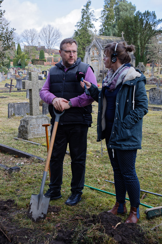 Slovak Ambassador HE Lubomir Rehak begins the refurbishment of Marina Paulinyova's grave at Brookwood Cemetery. Here the Ambassador is interviewed by Radio Slovakia International.
